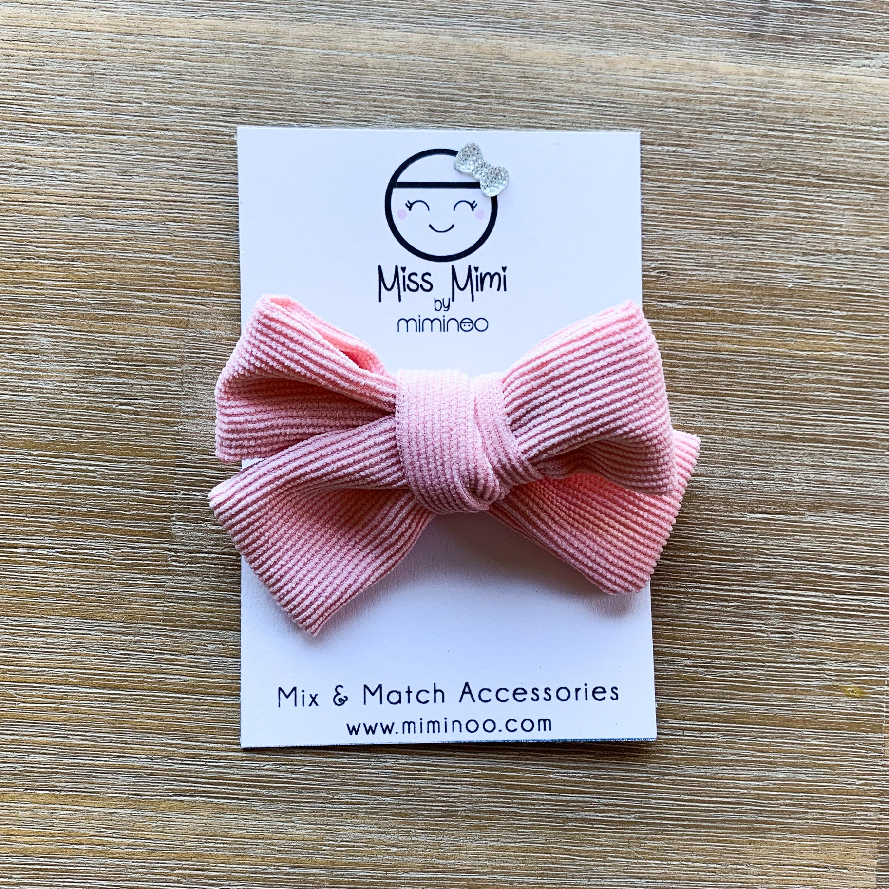 Baby Girl Pink Corduroy Hair Bow Headband and clip