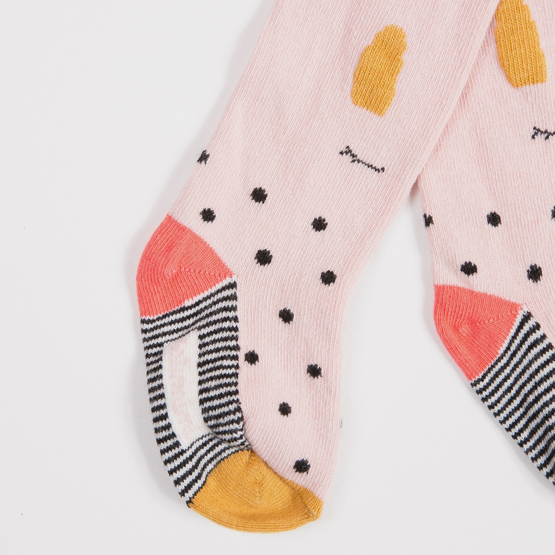Polka dots and stripes on the foot, against a soft powder pink, to match with this season's looks from the "Winter Tales" d'hiver Girl's line! Soft stretch fabric knit. Flat elasticated waist that does not squeeze baby's tummy. Comfortable gusset. Catimini signature on the sole.