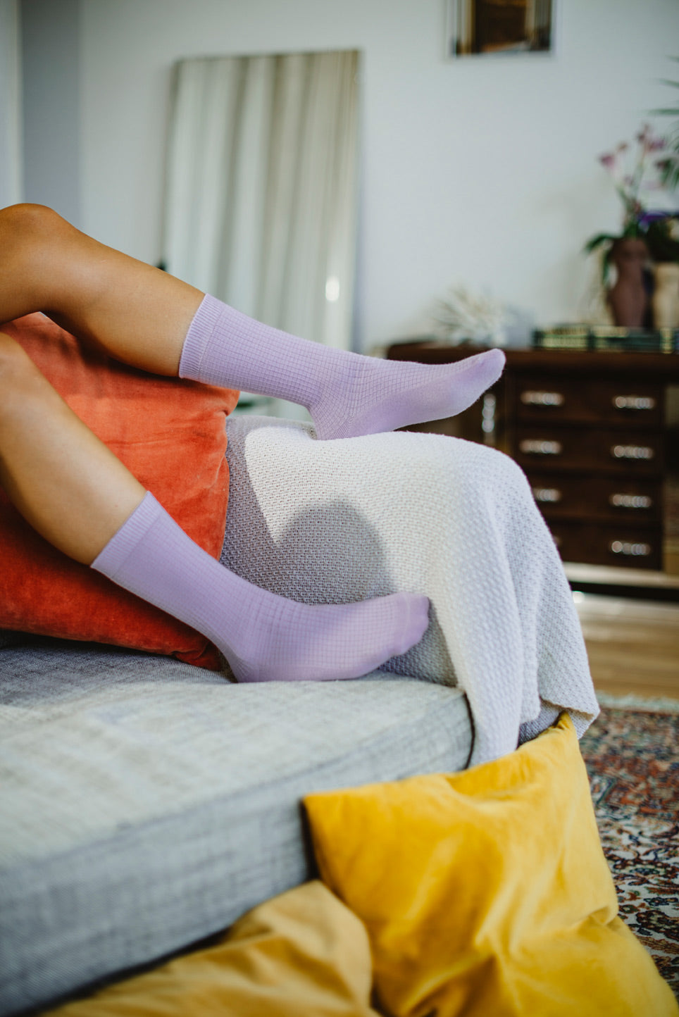 Fun and comfy pair of socks shaped as a yoga mat. One size fits all.