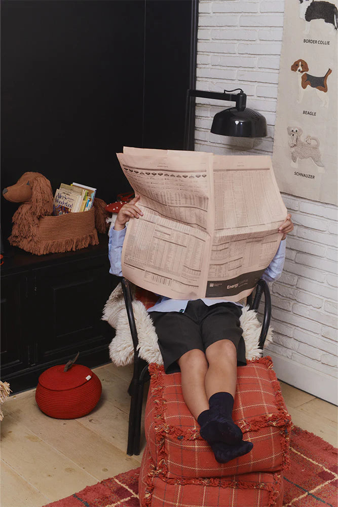 A British vibe transformed into a tartan puff, perfect for tiny dreamers! Handwoven on traditional looms, this puff features a classic tartan design in warm Maple Red. Its soft fringes add a playful touch and extra texture. The perfect spot to sit, play, and brighten up any little one’s space. The puff is removable and washable.