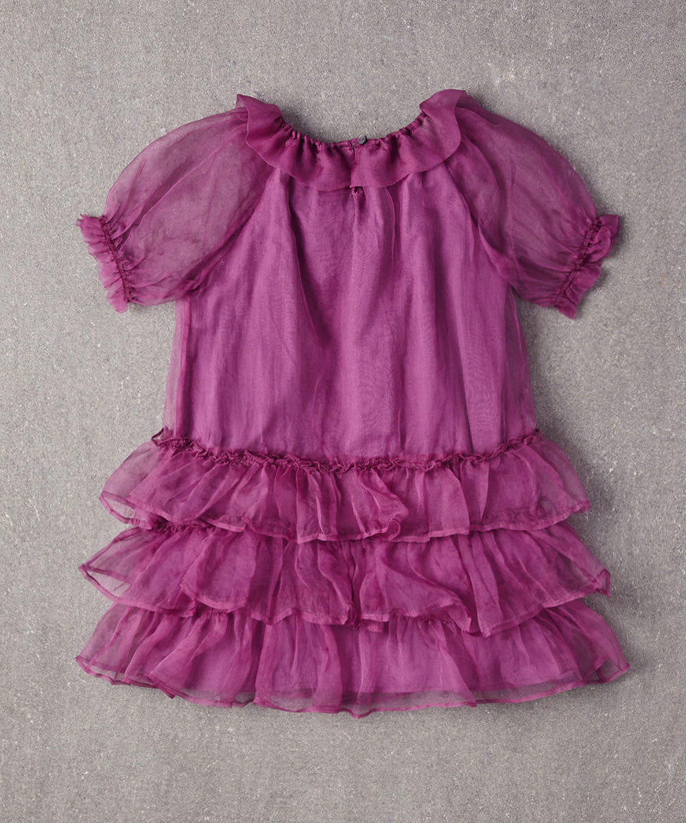 100% silk organza drop waist dress with ruffle tiers in Iris Orchid .