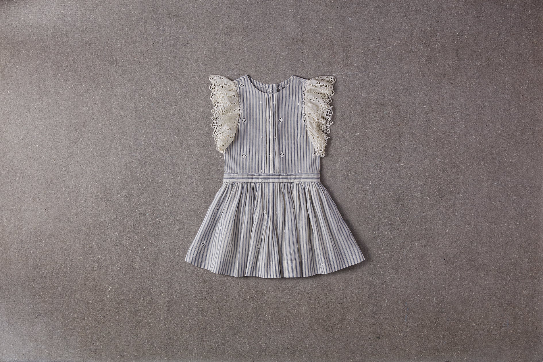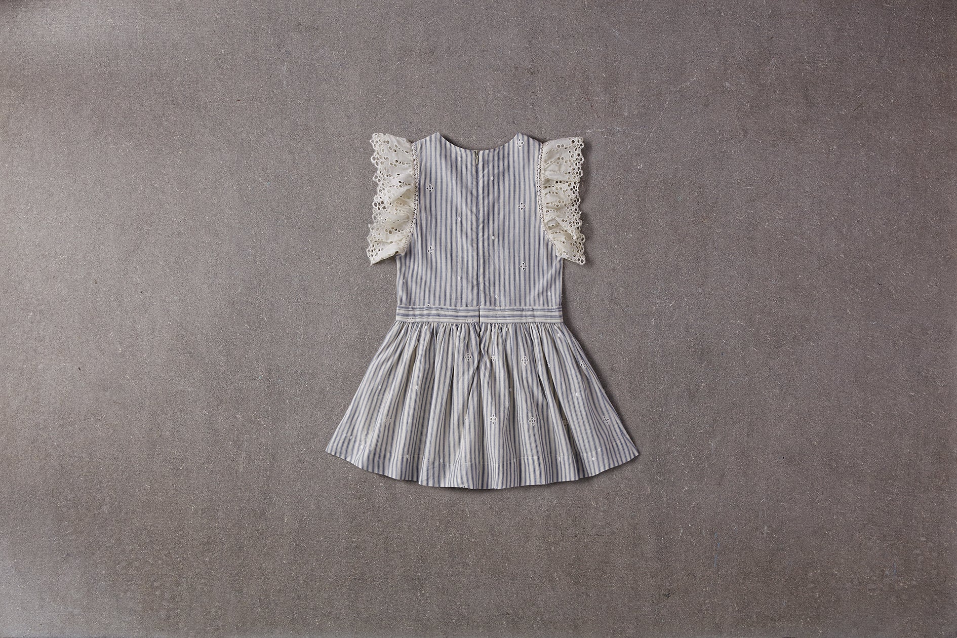 Nellystella Zoe Dress in Cotton Stripe Blue & Ecru (Size 3)