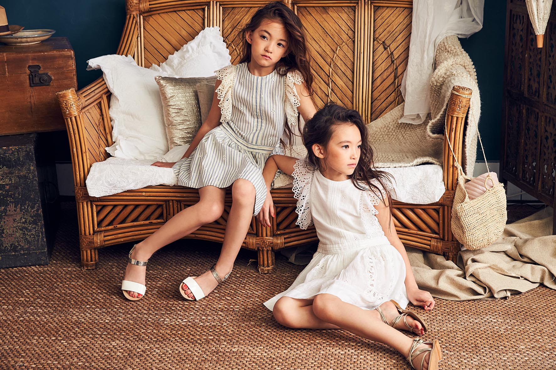 A lace and embroidery dress by Nellystella featuring lace sleeves, embroidery on the front and back and gentle pleats on the front. Zipper back closure. Made in 100% cotton, fully cotton lined.