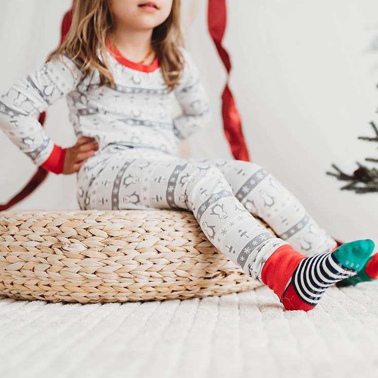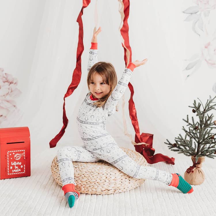 A 2 piece set of organic cotton kids pajamas in 'Winter Wonderland'. A perfect gift this Holiday Season! Q for Quinn’s buttery soft, flat seam pajamas are snug fitting for maximum comfort and safety.