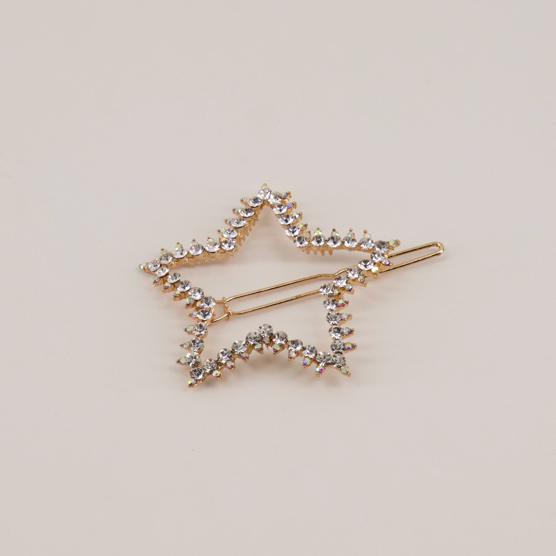 The pretty and sparkling Alexa Diamante hair clip is truly a shining star. Gold plated and embellished with set clear white diamante stones for that extra glamour. A must have hair accessory for any modern princess.