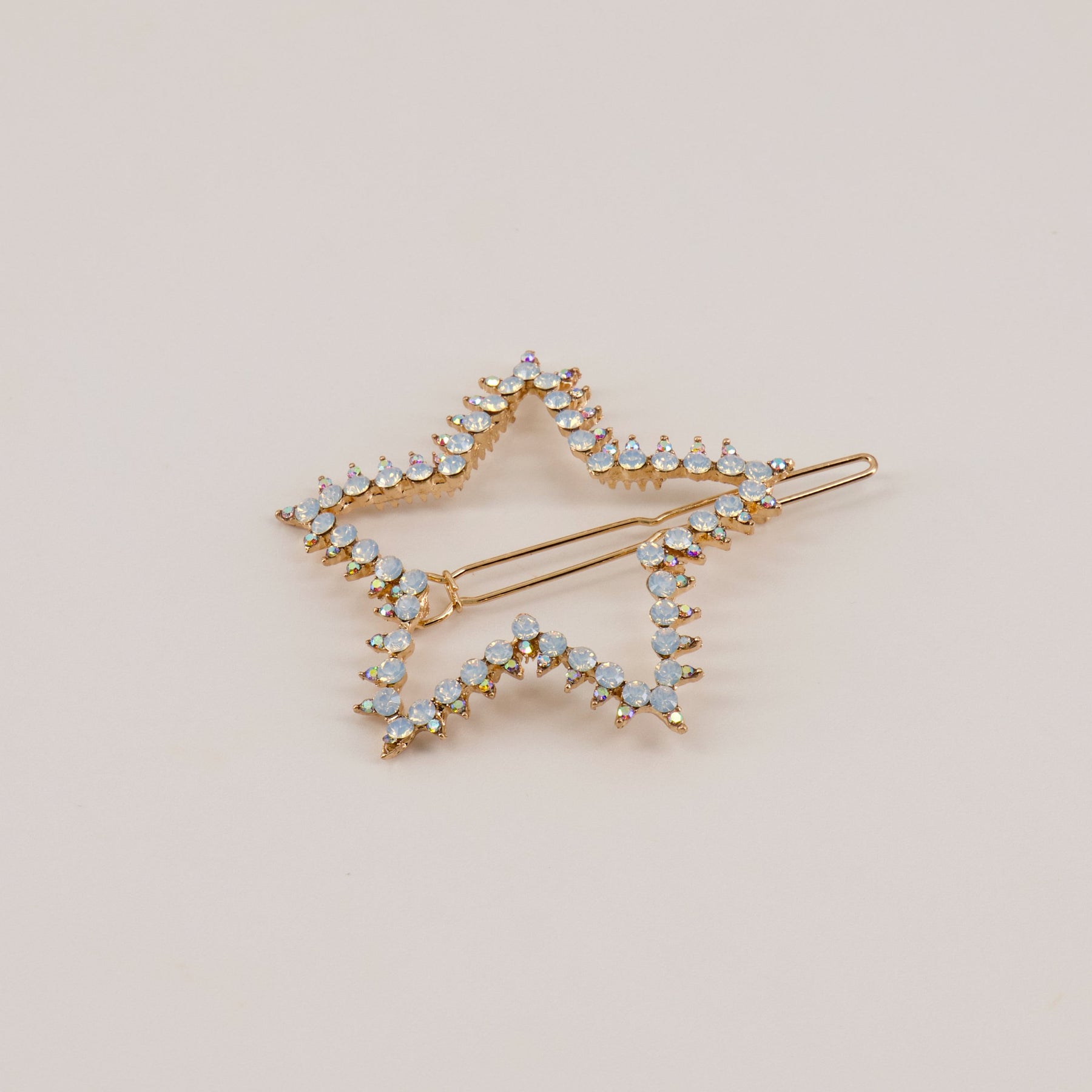The pretty and sparkling Alexa Diamante hair clip is truly a shining star. Gold plated and embellished with set clear white diamante stones for that extra glamour. A must have hair accessory for any modern princess.